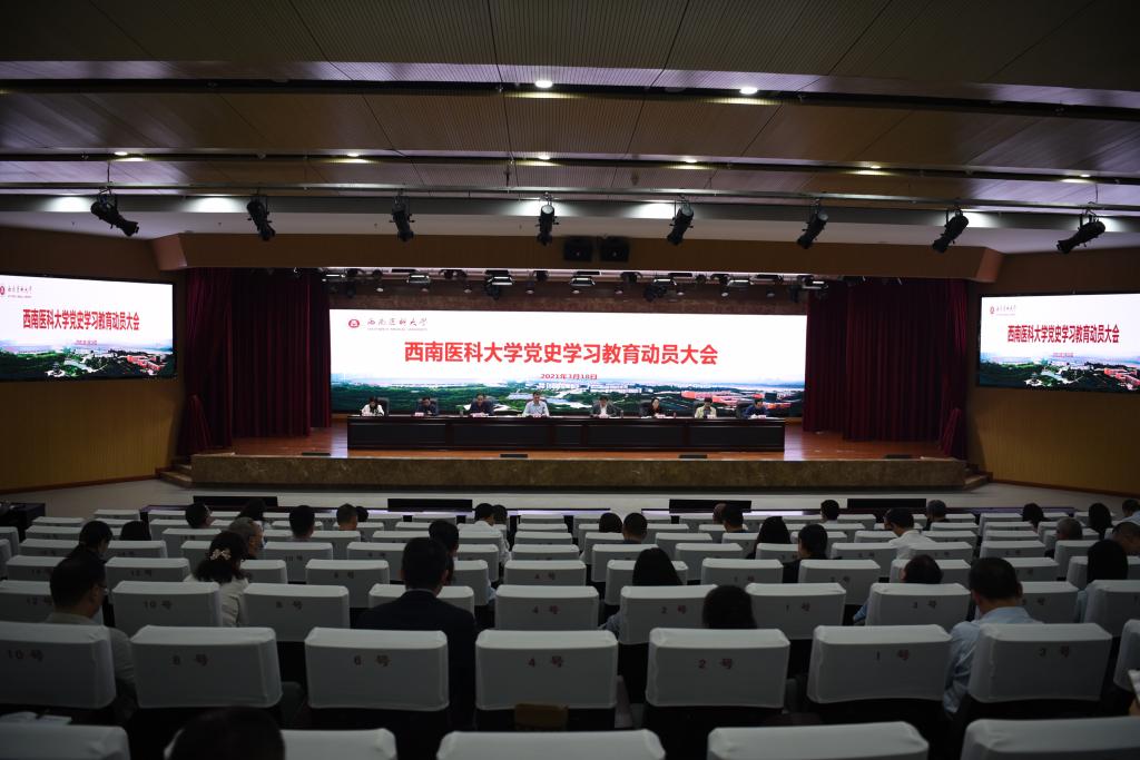 胸怀千秋伟业,恰是百年风华。3月18日下午,学校召开党史学习教育动员大会。全体校党委中心组成员、处级领导干部在主会场城北校区第一学术报告厅参会,全体科级干部,校本部教研室、实验室主任,党支部书记,三附院两办、学生科、教务科、研究生科负责人等通过观看视频直播参会。会议由主持行政全面工作副校长张春祥主持。
