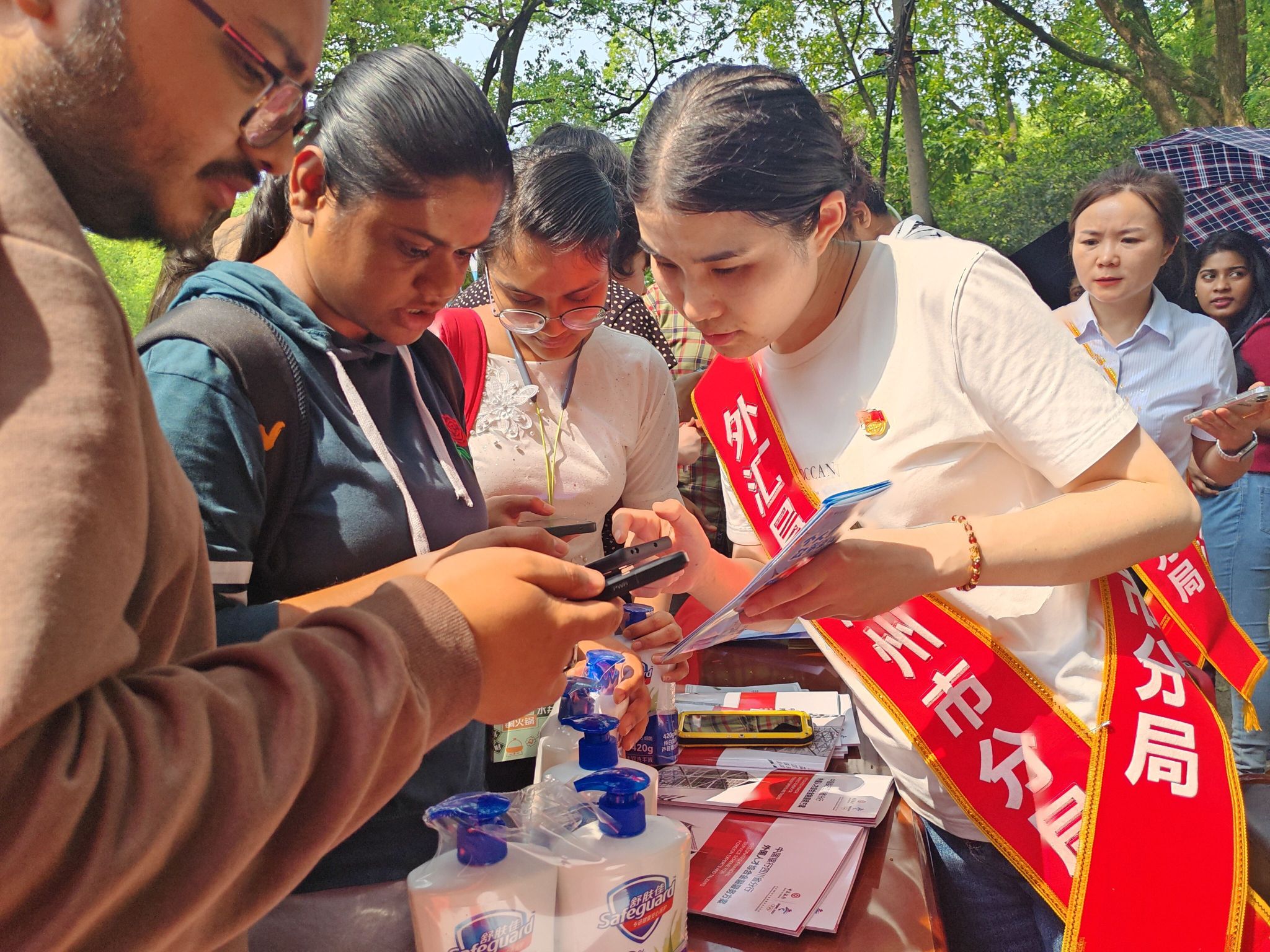 4月15日下午,为深入学习贯彻党的二十大精神,推动构建人类命运共同体,切实提升来华留学生在泸生活的便利性,更好帮助留学生读懂中国、融入中国,国际教育学院党支部联合中国人民银行泸州市分行机关第五党支部在学校忠山校区篮球场开展“校地支部共建 助力国际化人才培养”主题党日活动暨“外籍师生支付无忧行”数字人民币(移动支付)进高校体验活动。中国人民银行泸州市分行机关第五党支部书记段昆、货币金银科科长周影、国际教育学院党支部书记、院长陈勤、副院长姚远锟、财务管理处副处长童吉等相关人员参加活动。