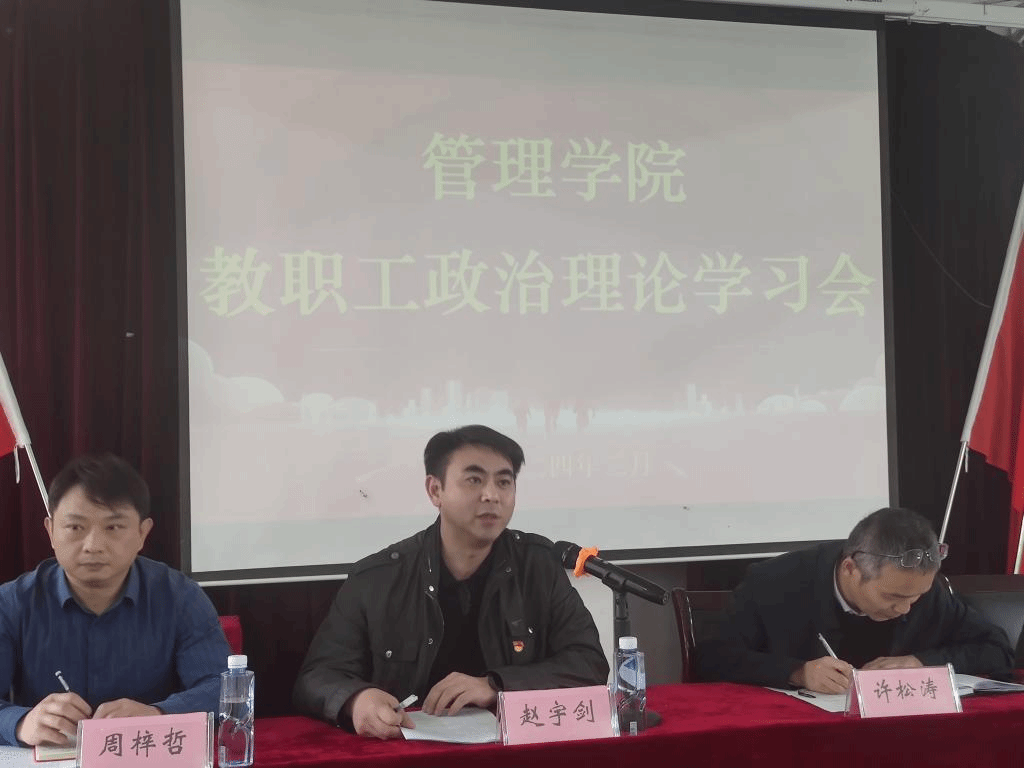 为进一步推进教职工政治理论学习制度化、规范化,切实增强全体教师贯彻执行党的路线、方针、政策的自觉性、坚定性,提高学习教育实效,聚焦学校中心任务,凝心聚力推进学院工作开展,3月27日下午,学院在文理实验楼117多功能报告厅召开全体教职工大会暨政治理论学习会。学院党委书记赵宇剑主持召开此次政治理论学习会,全体教职工参加会议。