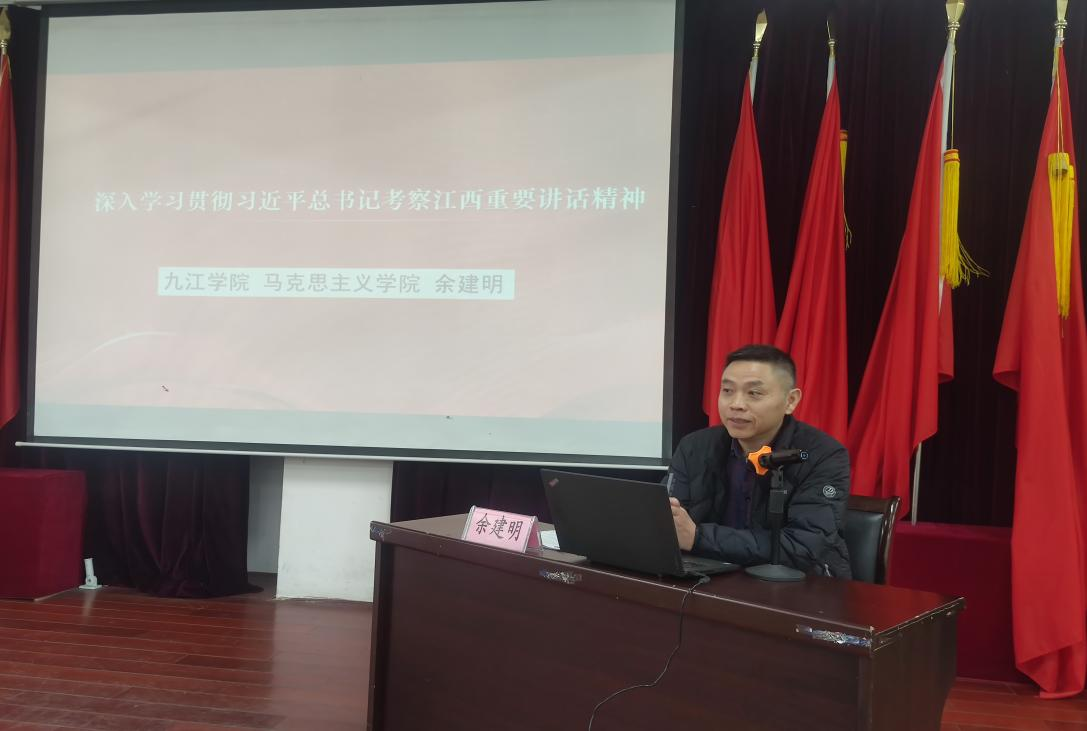 12月13日下午,ac米兰官网中文网站在文理实验楼117报告厅召开教职工政治理论学习会,此次会议特邀九江学院深入学习贯彻习近平总书记再次考察江西重要讲话精神宣讲团成员余建明副教授为全体教职工作专题宣讲报告,党委书记赵宇剑主持。