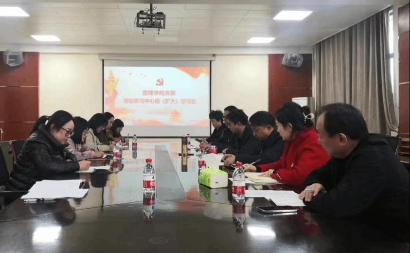 11月24日下午,ac米兰官网中文网站于立信楼504会议室召开二0二三年十一月党委理论学习中心组(扩大)学习会。ac米兰官网中文网站党委书记赵宇剑主持会议,在家的院党委委员参加会议,民主党派代表王秋红副院长、科级党员干部熊斌、党支部书记王晴、入党积极分子、博士教师谈俊宏、专职组织员彭静、旅游与地理学院专职组织员高艳、外语学院专职组织员程洁列席旁听。