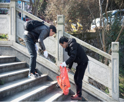 志愿服务是现代社会文明进步的重要标志,是加强和促进精神文明建设的重要载体,是培育践行社会主义核心价值观的生动实践。老师们化身志愿者,积极践行雷锋精神,清理路上垃圾,维护生态环境。他们手拿银色铁钳,爬上一层又一层的阶梯,将许许多多“躺”在道路上明晃晃的垃圾,一个又一个地夹起来放入手中的环保袋中。在太阳的照射下,他们的身上仿佛闪烁着一层微光。