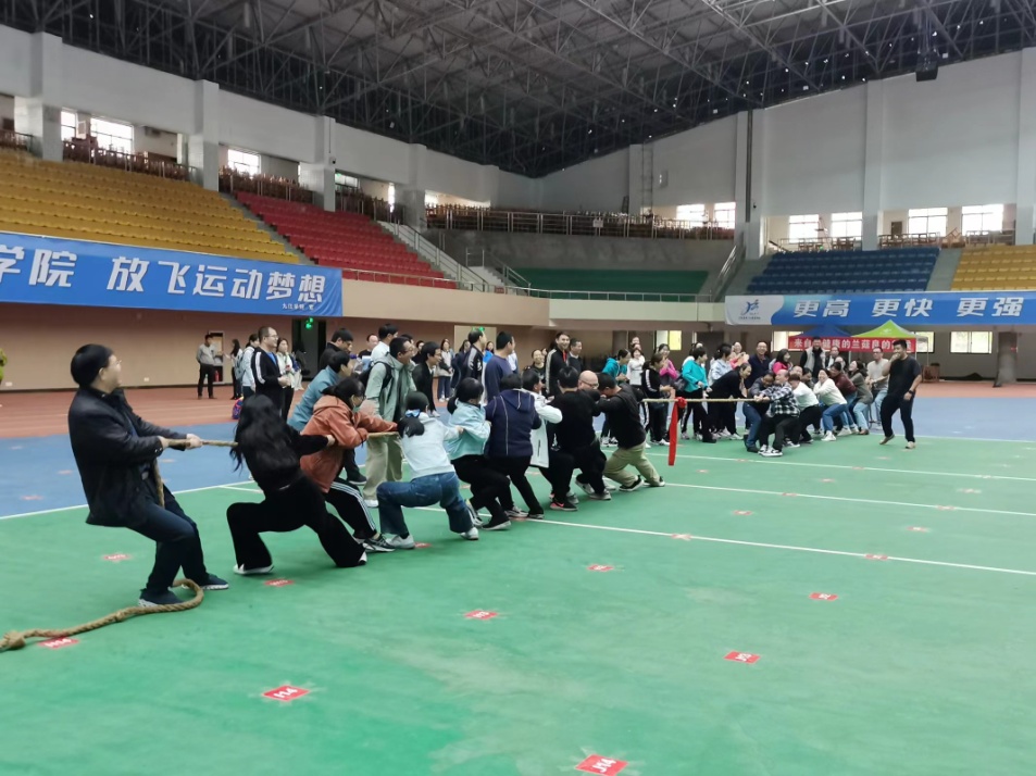 本次比赛重在参与、贵在合作、意在友谊,学院工会委员们集思广益、精心策划,设置了男女混合毛毛虫竞速赛、男女混合拔河角力赛、男女混合篮球准头赛、男女混合跳绳竞数赛、男女混合羽毛球竞技赛等五个项目,无论是赛前以党支部、教研室、科室组队的,还是现场兴起临时组合的,或是与现场学生即兴互动的,不设固定的赛程赛制,快乐是唯一标准,健康是永恒祝福,团结是奋斗力量,较量中精彩纷呈,活动中欢声笑语,老师们乐在其中,活动取得了圆满成功。
