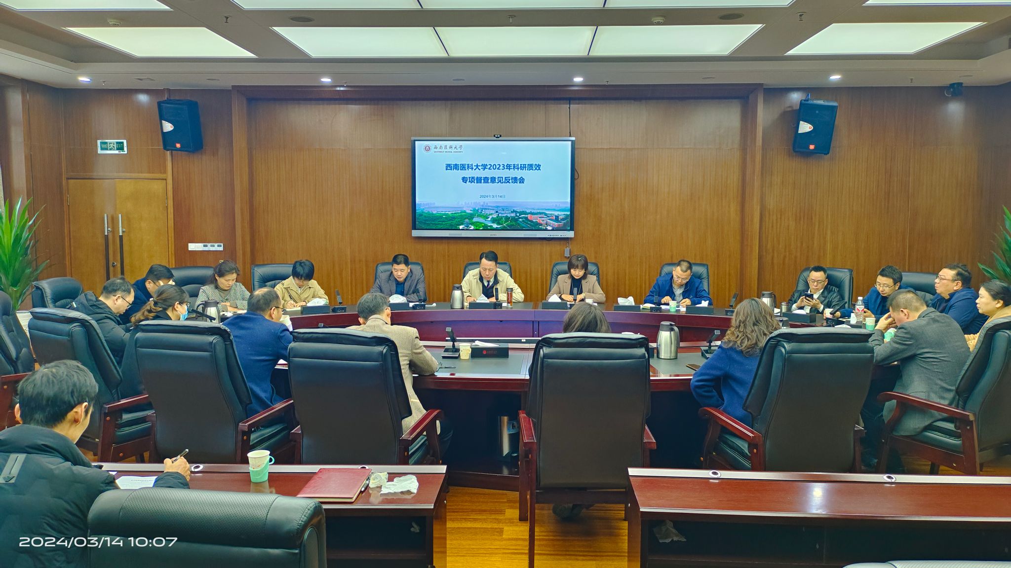 3月14日,学校科研质效专项督查意见反馈会在城北校区一会议室召开,就2023年度督查发现的问题向4个二级学院进行集中反馈。会议由党委巡察办公室主任肖洁主持,党政办公室主任唐柯、科技处处长周翔宇、大学科技园管理办公室主任田清华出席会议,被督查的基础医学院、护理学院、药学院、中西医结合学院党政领导班子成员参加会议。