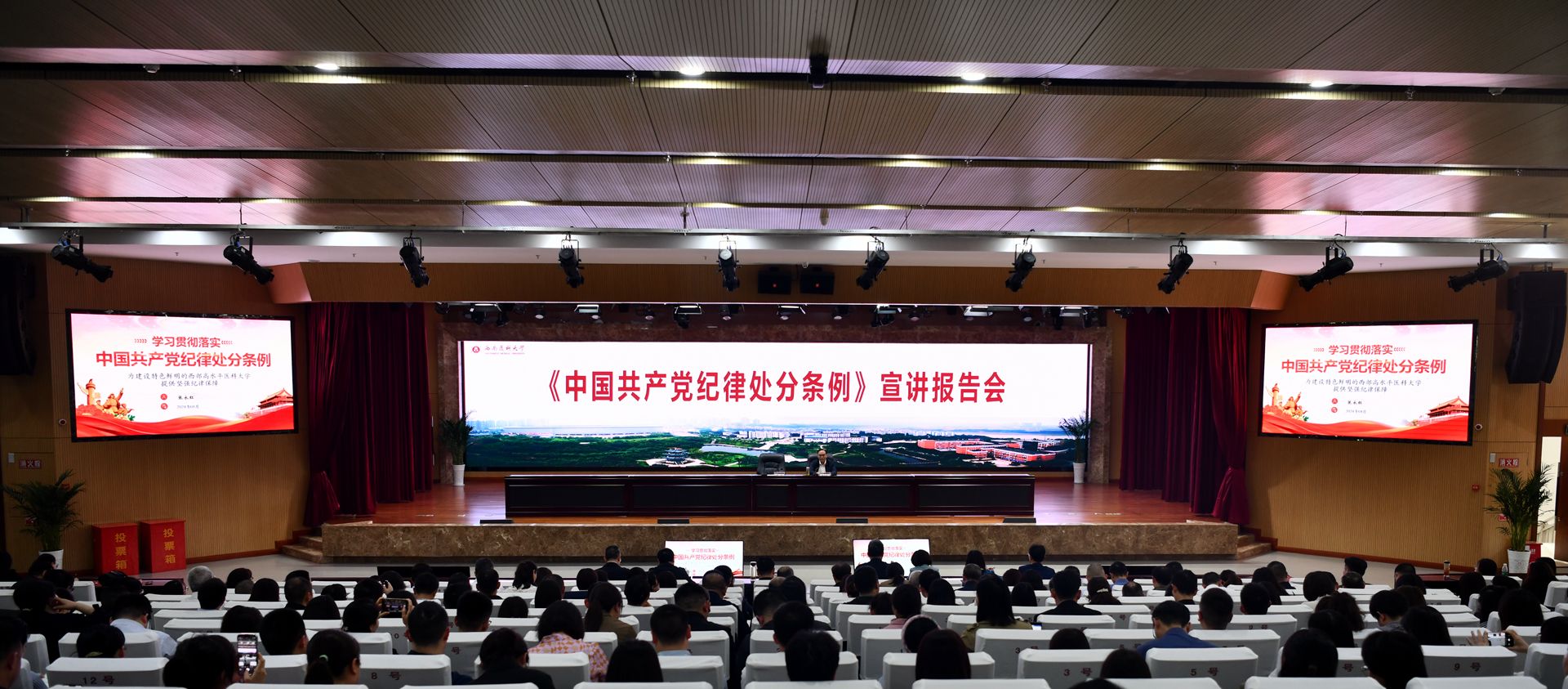 为深入学习贯彻习近平总书记关于党纪学习教育的重要讲话和重要指示精神,教育引导全校党员干部切实做到学纪、知纪、明纪、守纪,4月25日,学校在城北校区第一学术报告厅举办党纪学习教育专题辅导。会议由学校党委书记廖斌主持。