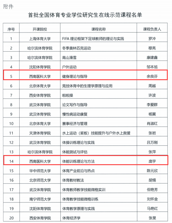 学校3门研究生课程获首批全国体育专业学位研究生在线示范课程认定