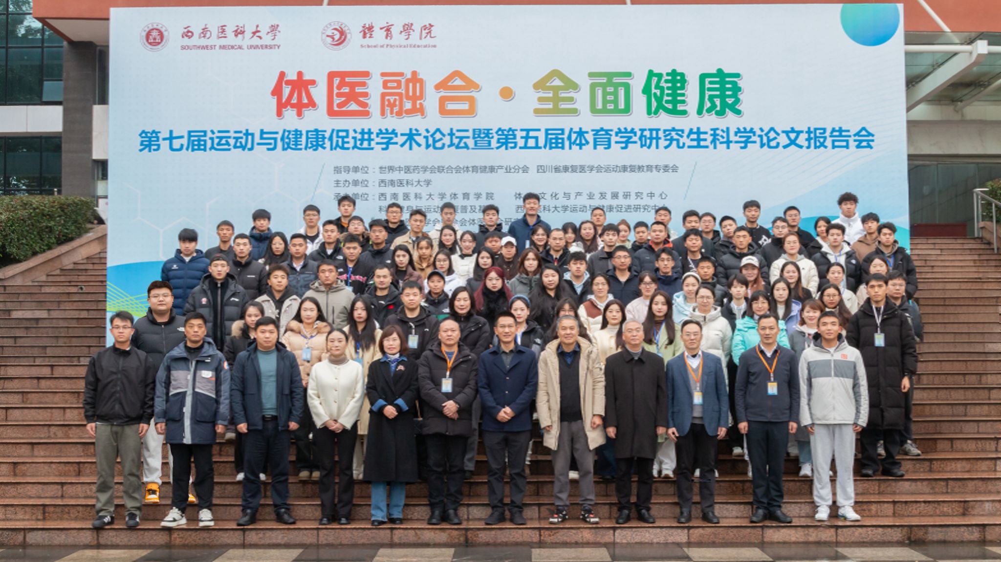 本次论坛以“体医融合·全面健康”为主题,由世界中医药学会联合会体育健康产业分会、四川省康复医学会运动康复教育专委会为指导单位,beat365英国官方网站主办,beat365英国官方网站体育学院、体育文化与产业发展研究中心、运动与健康促进研究中心、世界中联体育健康产业分会体医融合研究基地、国家体育总局体育文化发展中心巴蜀体育文化研究基地、泸州市科学健身与运动康复普及基地共同承办。论坛采取线下方式进行。本届论坛吸引了来自北京体育大学、上海体育大学、成都体育学院、湖北民族大学、beat365英国官方网站等66个单位、200余名体育学研究生及研究者投稿和参会,大家汇聚一堂、深入研讨,交流了当前“体医融合、全面健康”研究思路,深入探讨了运动与健康促进的未来发展方向。