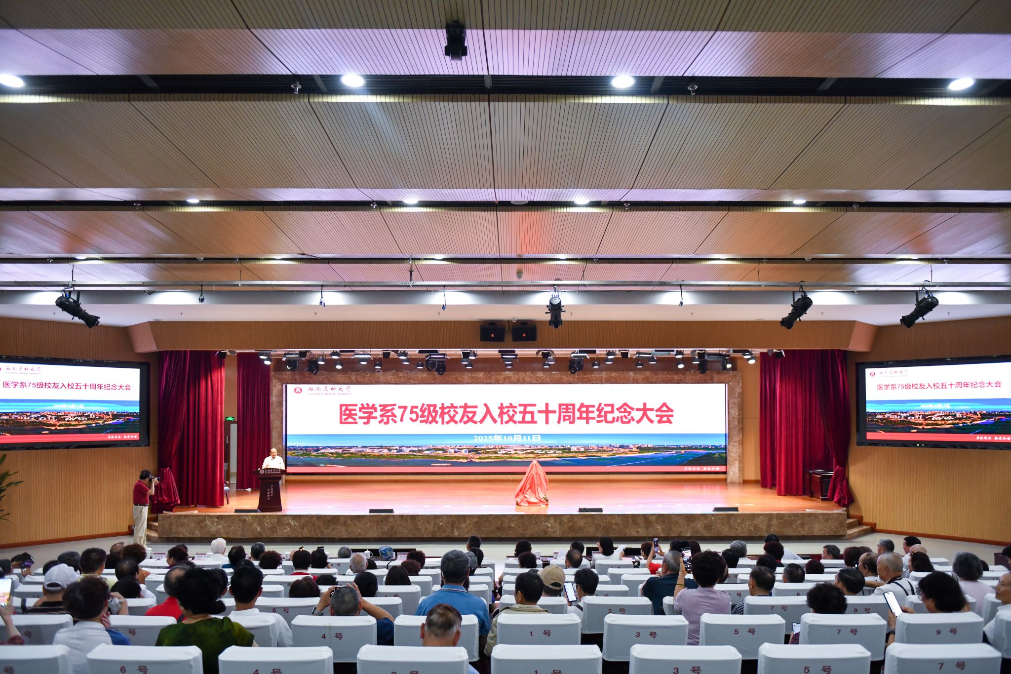 10月11日,beat365英国官方网站(原泸州医学院)75级校友入校50周年纪念大会在城北校区第一学术报告厅举行。75级全体返校校友,与在校校领导、相关职能部门领导齐聚一堂,共庆这一难忘时刻。大会由75级校友、beat365英国官方网站解剖教研室原主任萧洪文教授主持。