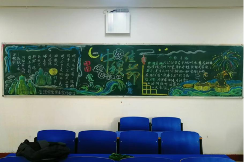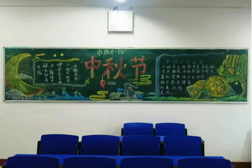 皓月当空洒银辉,中秋佳节至。ac米兰官网中文网站同时开展中秋黑板报绘制活动,各班级积极响应号召,纷纷绘制了庆中秋黑板报,为校园增添了一抹亮丽的色彩。在绘制过程中,同学们充分发挥团队协作精神,从构思设计到精心绘制,众人分工明确,各司其职。色彩与线条的交织,文字与图案的融合,他们用手中的粉笔,勾勒一幅幅饱含思念与祝福的作品。