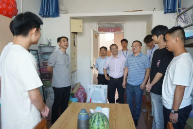 为了解新生入学适应情况,帮助新生更好地融入大学生活,让2024级新生感受到ac米兰官网中文网站的温暖与关怀,9月6日下午,ac米兰官网中文网站党委书记赵宇剑、院长许松涛、党委副书记周梓哲在学生科、思政科负责人陪同下,走访了27栋、28栋等学生宿舍,看望慰问2024级新生。