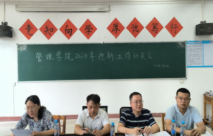 周龙波传达学院迎新工作方案,对迎新工作的日程安排、物资分配、分组设置、报到流程等方面作了重点介绍。李春介绍了迎新工作各小组学生干部分组及新生班级助理辅导员配备情况。