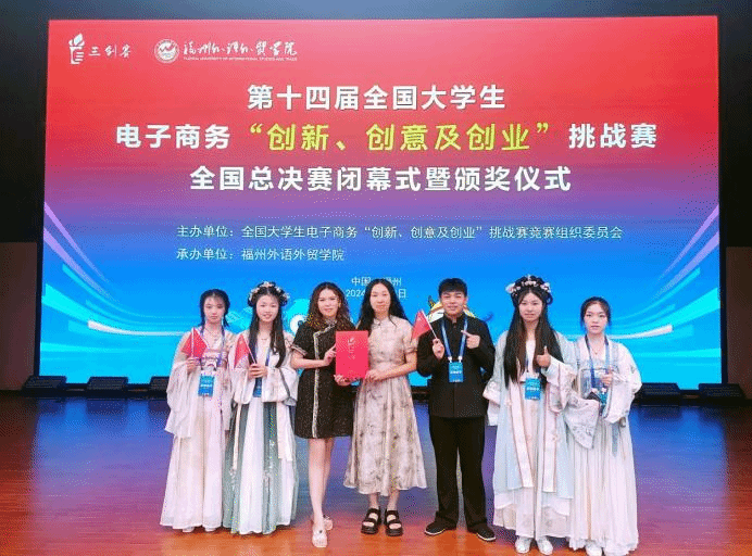 7月31日-8月2日,在全国大学生电子商务“创新、创意及创业”挑战赛(以下简称“三创赛”)全国总决赛中,来自ac米兰官网中文网站的黄淑菁,巫依敏,占宇雯,郑文静,陈紫雄五名同学在张毅、王晴两位老师指导下组成的“做大做强小分队”,凭借非凡的创新创意实力、亮眼的实践成绩、精彩的答辩展示以及在电子商务领域取得的丰硕成果脱颖而出,斩获全国一等奖和最佳创新奖,张毅、王晴被授予“优秀指导老师”称号,实现了我校在该赛事上的新突破。