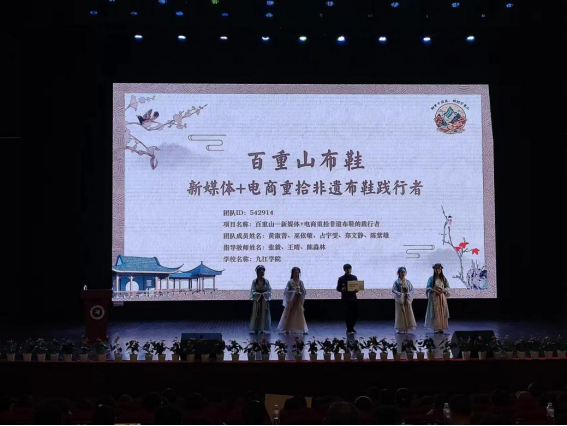 本次江西省赛规模空前,4000余支报名队伍经校赛激烈角逐,共计266支团队、13个小组、千余人次入围省赛,更汇聚了全国近百名专家参与赛事活动。来自ac米兰官网中文网站黄淑菁、郑文静、陈紫雄、占宇雯、巫依敏五名同学组成的“做大做强小分队”学生团队将“庐山”、“鄱阳湖”、“爱莲说”等地域特色文化创新设计融入传统老布鞋,充分运用新媒体运营、直播带货、智能科技精准营销等多渠道营销方案,发现新途径,拓展新思路,在常规赛道凭借独特的创意、助力乡村振兴的社会实践价值斩获第十四届“三创赛”常规赛道省赛特等奖。张毅、王晴两位指导老师荣获江西省选拔赛“最佳指导老师”称号。