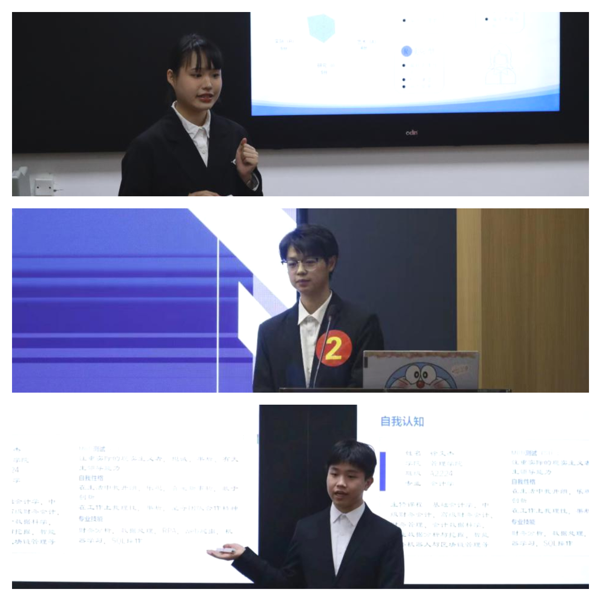 赛场上,各选手从职业定位、自我探索、外界探索、行动计划、评估与反馈等多角度多维度剖析,生动地描绘了个人职业发展的蓝图。评委嘉宾结合同学们的个人简介和陈述情况,有针对性地就选手们的岗位意向、实习经历、科研经历、发展规划等进行结构化提问。评审过程中,评委嘉宾还重点指出选手们在岗位认知、个人简历撰写、陈述PPT制作、现场面试表现等方面存在的优点和不足,建议同学们要进一步深化对新兴行业的认知,结合实际情况,综合考虑多方面因素,科学规划职业道路。同时,评委嘉宾还勉励同学们要在实习实践中提升自己的求职竞争力,注重培养自己的综合素养。