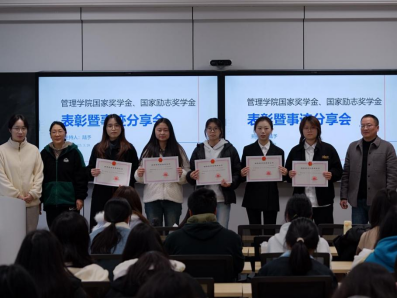 会议为国家奖学金、国家励志奖学金获得者代表颁发荣誉证书。