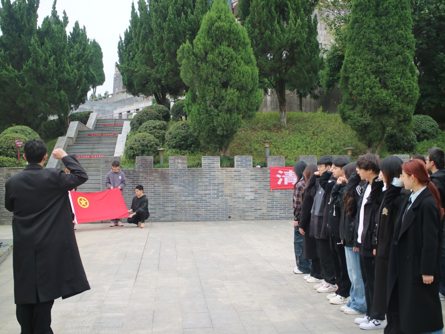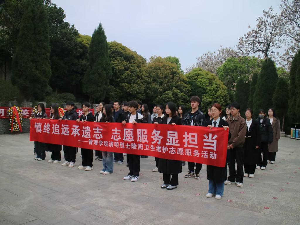 4月4日清晨,ac米兰官网中文网站组织40余名学生代表徒步前往九江市革命烈士陵园,开展“慎终追远承遗志,志愿服务显担当”祭扫英烈活动。在庄严肃穆的烈士陵园,同学们向革命烈士敬献花篮、集体默哀、重温入团誓词,随后分组擦拭烈士墓碑、清扫落叶。此次往返步行,不仅践行低碳理念,更让同学们深刻体会革命先辈的艰辛,大家表示将传承先烈遗志,为社会贡献力量。