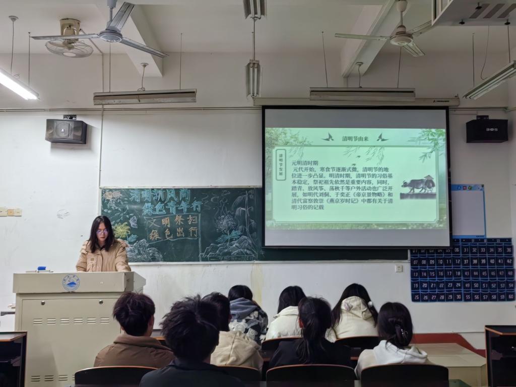 4月2日,ac米兰官网中文网站各班级团支部开展“清明新风尚,绿色青年行”主题团日活动,借助视频、PPT,展示清明节起源、发展及习俗,让同学们领略其历史底蕴与文化魅力,深化对节日意义的认知。围绕“低碳祭扫、文明追思”理念,通过案例分析与经验分享,组织同学们展开讨论,引导大家认识到文明祭扫对环境和文化传承的重要性。同学们承诺以鲜花祭奠、植树缅怀、云端寄语等绿色方式替代传统焚烧祭扫,以实际行动践行环保责任,展现青年担当,助力营造文明绿色清明。