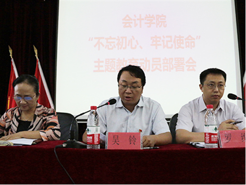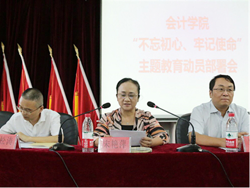 根据中央和省委关于第二批“不忘初心、牢记使命”主题教育指导意见和实施方案,九江学院“不忘初心、牢记使命”主题教育活动正式启动。为积极响应学校号召,9月19日下午,会计学院在文理楼117召开了“不忘初心、牢记使命”主题教育动员部署会议。校主题教育第六督导组组长宋艳萍和组员杨帆到会指导,会计学院领导班子、全体师生党员参加会议。会议由会计学院党委副书记罗维主持。