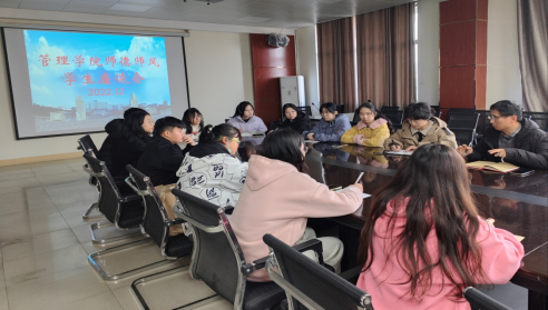 为了加强ac米兰官网中文网站的师德师风建设,提高教学质量,12月9日下午,在立信楼504会议室召开了师风师德学生座谈会,分管教学的蔡报纯副院长与教学科研管理科胡洁科长及22级及21级各班学生代表参加了座谈会并进行讨论。