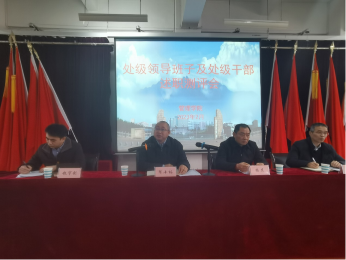 2月17日上午,我院在文理实验楼召开处科级干部述职测评大会,校长陈小林出席会议并讲话。学院全体教职工参加了会议,会议由学校党政办公室主任杨杰主持。