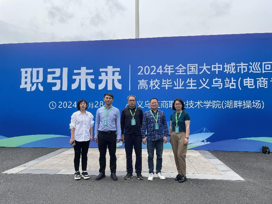 为进一步贯彻落实学校关于毕业生就业工作的决策部署,推动我校毕业生高质量充分就业,4月27日至29日,受义乌市政府邀请和学校委派,学校招生与就业处副处长吴疆、ac米兰官网中文网站党委书记赵宇剑、学生管理科科长周龙波、电商专业辅导员熊雅涵、班主任朱娟一行5人前往义乌市参加2024年全国大中城市巡回招聘高校毕业生义乌站(电商专场)暨电商人才就业创业活动。