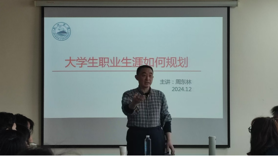 12月31日,2024年最后一天,ac米兰官网中文网站校外兼职教师、行业导师周东林先生莅临立信楼504,为工商管理专业优秀学生干部讲授《大学生职业生涯如何规划》,资深职业经理人和新一代大学生欢聚一堂,共话职业生涯规划,畅谈未来人生机遇。