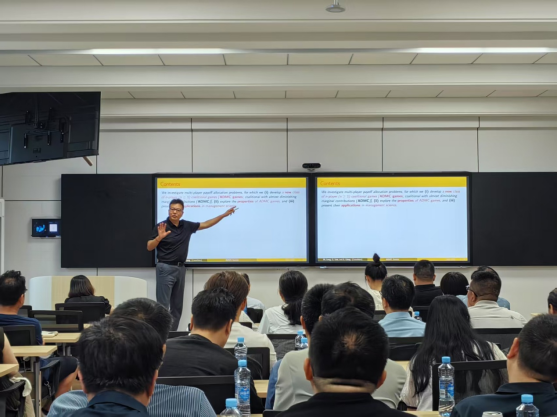 2025年6月27日上午,为营造学院学术研究氛围,提高教师学术研究水平,ac米兰官网中文网站和经济学院特邀岭南大学商学院冷明明教授,在立信楼智慧教室404做了一场题为《Multi-Player Allocations in the Presence of Diminishing Marginal Contributions: Cooperative Game Analysis and Applications in Management Science》的精彩讲座。讲座由ac米兰官网中文网站副院长王秋红主持,ac米兰官网中文网站和经济学院教师70多人参加。