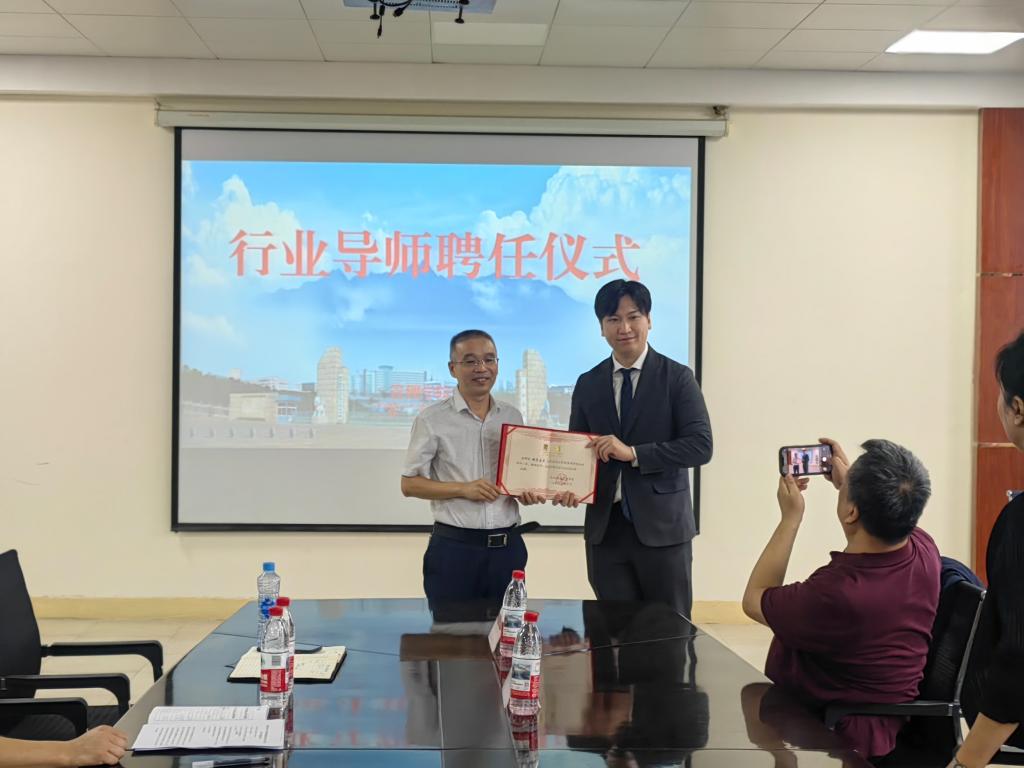 讲座前,ac米兰官网中文网站还举行了企业导师聘任仪式,学院院长许松涛为富士通株式会社公共事业本部公共咨询事业部经理锅岛直宏颁发企业导师聘书,为进一步加强校企合作,为学院专业建设注入更多产业实践力量。