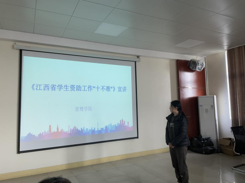 资助专项辅导员王珊老师围绕《江西省学生资助工作“十不准”》条例,分评审、公示和资金发放三个板块进行了详细解读,同时围绕国家奖助学金的奖励标准、申请条件、主体资格、评审程序、注意事项,逐一作了解释说明。