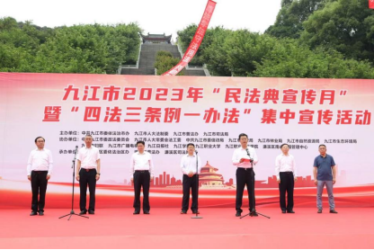 市委常委、政法委书记严盛平出席并宣布仪式启动,副市长、市公安局局长陈鹏辉致辞。他指出,全市各职能部门要以习近平法治思想为指引,进一步增强做好法治宣传教育工作的责任感、紧迫感;要以普法责任制为抓手,努力形成法治宣传教育工作合力;要以考核评价为导向,不断提升全民普法工作水平,全力推动法治九江建设迈向新台阶。