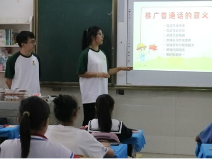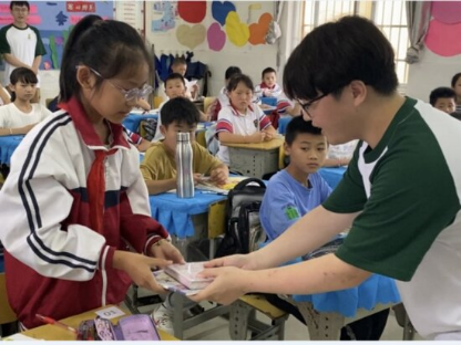 为消弥城乡教育鸿沟,强化数字赋能,建设数字乡村,实践队赴海会镇中心小学开展青春公益支教系列活动,课堂内容丰富多彩,不仅有拧紧乡村振兴“安全阀”的防溺水教育课,还有攻克乡村振兴“语言关”的普通话推广课,队员们还通过举行“典耀中华”读书课,讲解国家智慧教育平台、中国语言文字数字博物馆等平台使用方法帮助孩子们了解线上学习渠道,赋能乡村振兴“数字力”。一系列支教活动以多彩有趣的形式寓学于乐,在帮助孩子们增进知识、开拓视野的同时队员们送上文具、书籍等礼品,让孩子们在轻松欢乐的氛围中学到新知识,为乡村教育事业发展贡献青春力量。