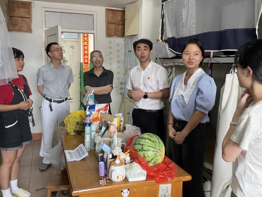 在全院上下深入开展学习贯彻习近平新时代中国特色社会主义思想主题教育之际,为进一步推动主题教育持续走深走实,切实为学生办实事、办好事,7月5日中午,ac米兰官网中文网站党政领导班子,20级辅导员、班主任一行走进学生宿舍11栋和7栋,看望慰问2020级暑期留校考研学生。