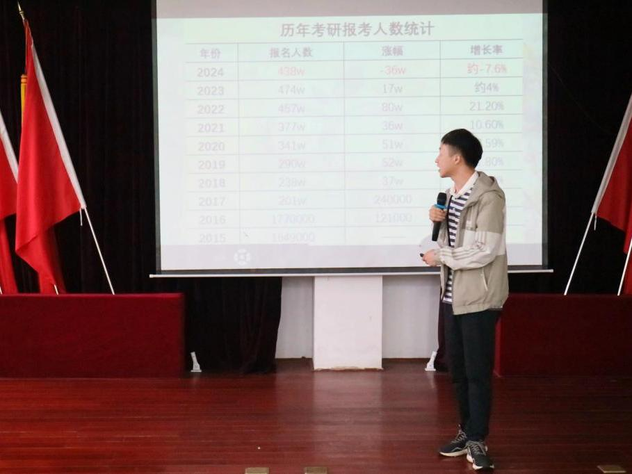 宣传优秀典型,发挥示范促学风。充分发挥学生骨干和优秀学生在学风建设中的示范带头作用,树立典型,营造氛围。邀请学院获得国家奖学金荣誉称号的学生做优秀事迹分享会。邀请2024年考研上岸学生做经验分享会。