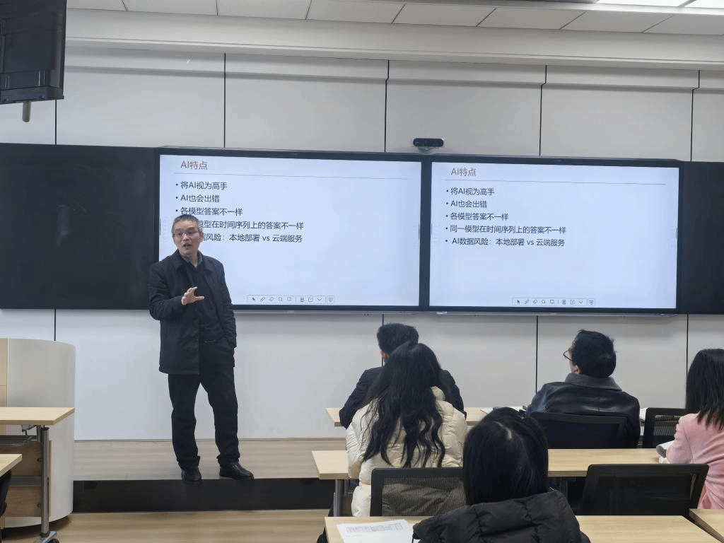 2月27日,为契合数字化时代发展需求、推动学院管理水平提升,ac米兰官网中文网站院长许松涛于立信楼404智慧教室,开展了“构建信息化思维,推进管理信息化建设,提升内部治理效能”主题的AI管理应用培训,学院领导班子和全体行政人员参加了培训。