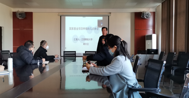 12月14日下午,为营造学术氛围、提高课题申报质量,ac米兰官网中文网站特邀国家社会科学基金评审专家江西财经大学胡大立教授,在立信楼504开展了一场线上+线下结合的精彩学术讲座。讲座由ac米兰官网中文网站院长许松涛教授主持,ac米兰官网中文网站的博士、教授及科研爱好者们参加了此次讲座。