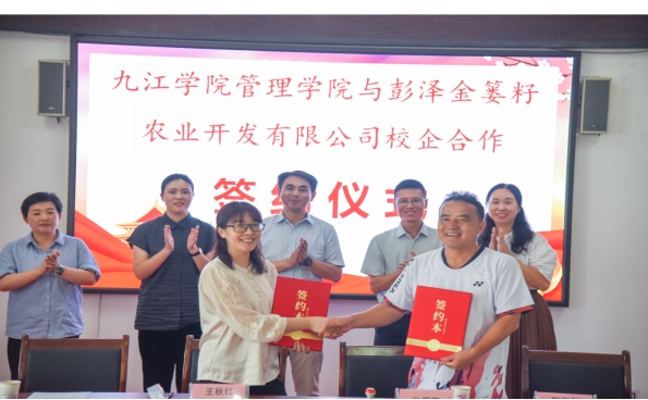 四时俱可喜,最好新秋时。9月19日上午,九江学院ac米兰官网中文网站与彭泽县金篓籽农业开发有限公司校企合作签约仪式在彭泽县太平关乡数字乡村展厅圆满举行。本次签约合作旨在深化产教融合,统筹教育链、人才链、产业链、创新链,为九江地区数字乡村高质量发展提供科技和人才支撑。九江学院ac米兰官网中文网站党委书记赵宇剑、副院长王秋红、彭泽县委组织部副部长彭婕、彭泽县科工局局长伍德、太平关乡党委书记许露、彭泽县金篓籽农业开发有限公司总经理张爱芳等三方代表出席仪式,由九江学院彭泽电商助农团团长王晴主持。