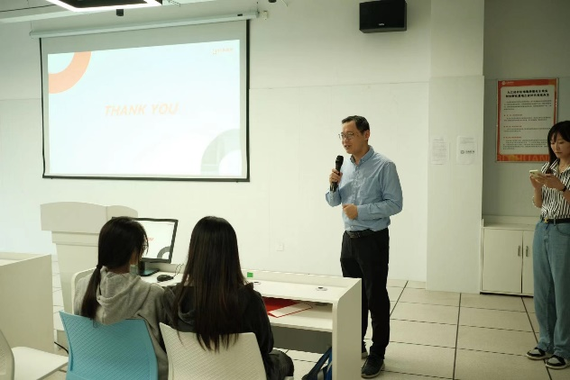 随后在二楼培训室,产业园负责人以PPT的形式进一步向同学们介绍了产业园运营方必创企业集团的性质和服务内容。作为跨境电子商务产业综合服务提供方,必创提供全方位的跨境电商生态服务,联合多家国际知名电商平台助力中国企业开辟网上丝绸之路,实现品牌出海,货通全球,形成了集品牌孵化、人才培养、国际物流、海外仓、跨境支付、知识产权、产品供应链等全链条的生态服务体系。