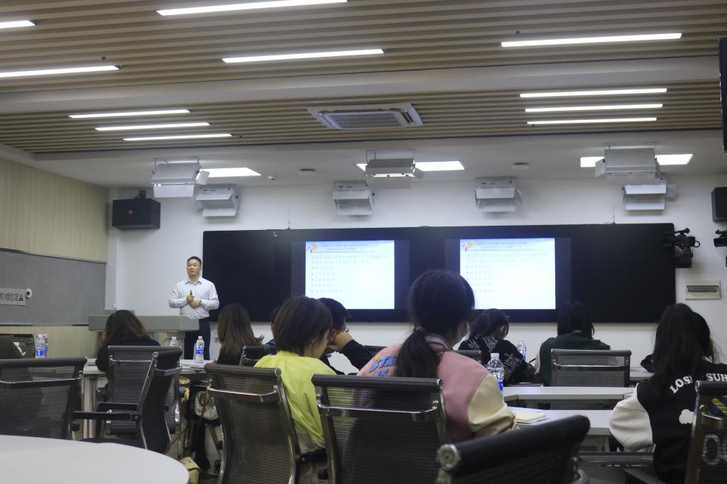 周梓哲在主持讲座中,详细介绍了张志成工作业绩,结合讲座内容向在场师生作了学院“互联网+”大学生创新创业大赛工作的再动员再部署。