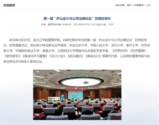 学院“人工智能+管理”的人才培养探索亦得到外部关注。会计学虚拟教研室获批为江西省首批省级虚拟教研室;2024年10月,ac米兰官网中文网站与九江市会计学会联合主办“新时代智能会计与业财融合论坛”,在当地产生了较大反响。近年来,广东石油化工学院经济ac米兰官网中文网站、河南财政金融学院工商ac米兰官网中文网站、东莞理工学院经济与ac米兰官网中文网站、西安欧亚学院会计学院等多所兄弟院校纷纷前来考察和交流,学习大数据与人工智能在管理类专业的创新应用。