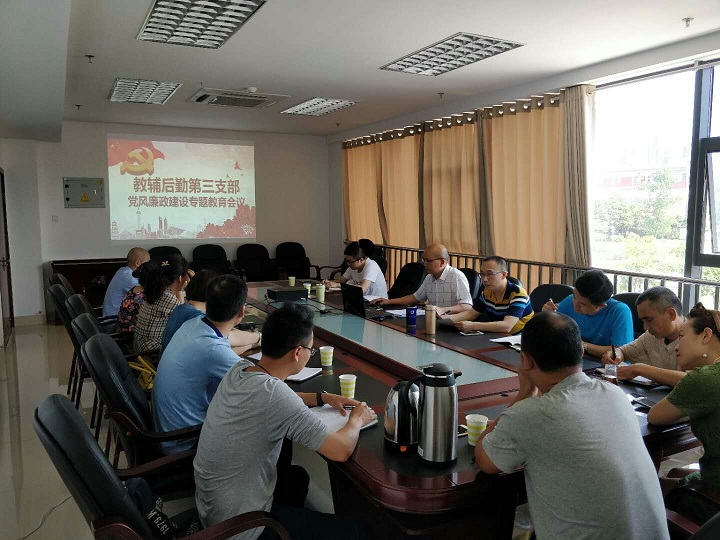 5月16日上午,教辅后勤第三党支部邀请教辅后勤党总支副书记、纪检专员吕春在德诚楼412会议室举办党风廉政教育专题培训会,支部全体党员、饮食服务中心、公寓管理中心和物业管理中心重点岗位人员约20人参加。
