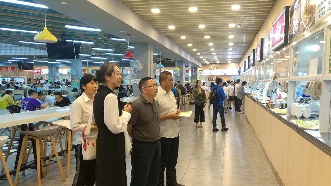 检查结束后,张处长与食堂负责人进行了深入交流,对食堂管理、食品安全及食堂菜品售价等交换了意见,张处要求食堂做好以下工作一、提高认识,高度重视食品安全工作;二、认真抓好货源控制,严格执行食品安全各项规章制度;三、认真调研,对菜品质量和售价进行分析和梳理,确保学生利益。