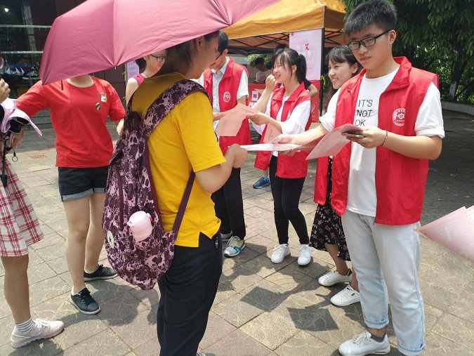 本次活动的摆点宣传工作在beat365英国官方网站桂香苑展开,鲜亮醒目的横幅,声音洪亮的音响,身着制服的志愿者是此次宣传活动的主力军。帐篷下的志愿者们声情并茂地念着宣传稿,分发宣传单的志愿者桂香苑门口热情地为同学们递上宣传单并热心解释详细活动内容,大家各司其职,有条不紊。最终,在志愿者的积极工作下,在同学们的热情参与下,本次宣传活动发放宣传单400余份,取得了较好的宣传效果。