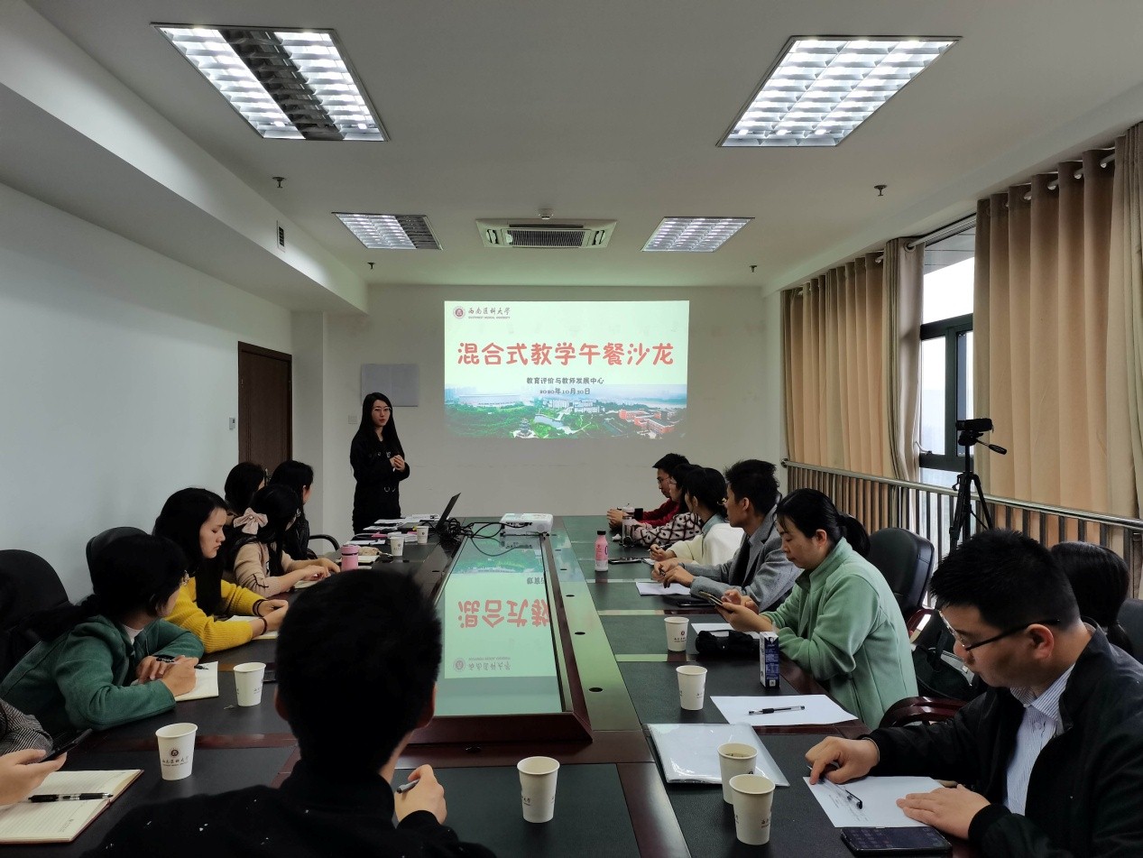 为了在后疫情时期延续线上教学成果,推进混合式教学改革,进一步提升教师的信息化教学能力与学生自主学习能力,提高课堂教学质量,10月30日,教育评价与教师发展中心在德诚楼912会议室组织开展了混合式教学研讨沙龙,活动由教师发展科王茂娟主讲。为保证研讨效果,本次活动采取小班交流形式开展,共有来自10个院系20名教师参加。