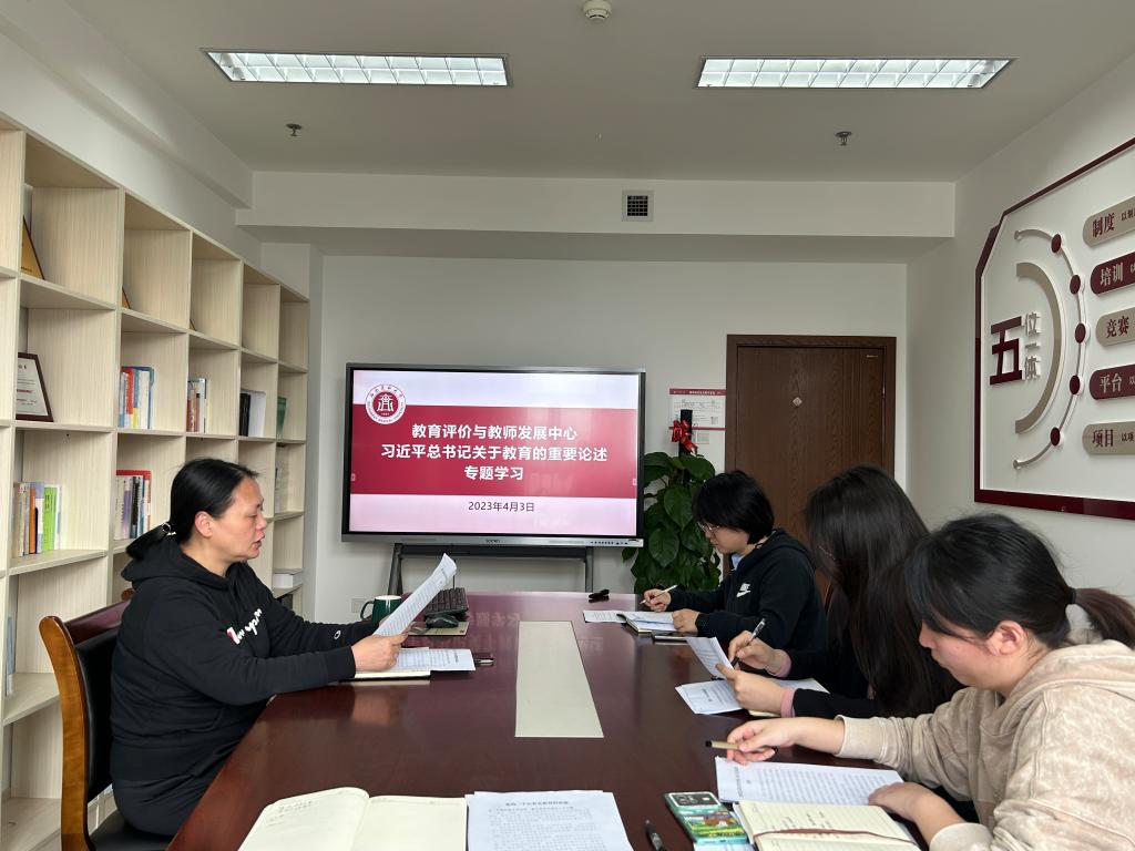2023年4月3日,教育评价与教师发展中心在德诚楼901会议室召开了“习近平总书记关于教育的重要论述”专题学习会,教评中心全体教职工参加。教育评价与教师发展中心主任赵琼主持专题学习会并主讲。