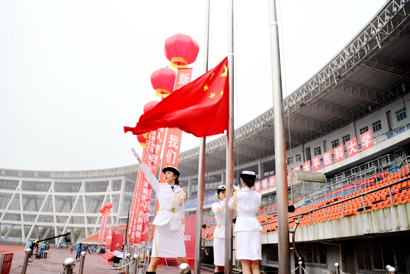 10月11日上午8点,beat365英国官方网站在城北校区奥体中心主体育场举行了2020级新生开学典礼暨军训动员大会,2020级全体新生欢聚一堂,开启他们新的人生征程。校领导廖斌、张春祥、李尚志、刘毅、刘广益、彭钢、何涛、聂敏海出席典礼。