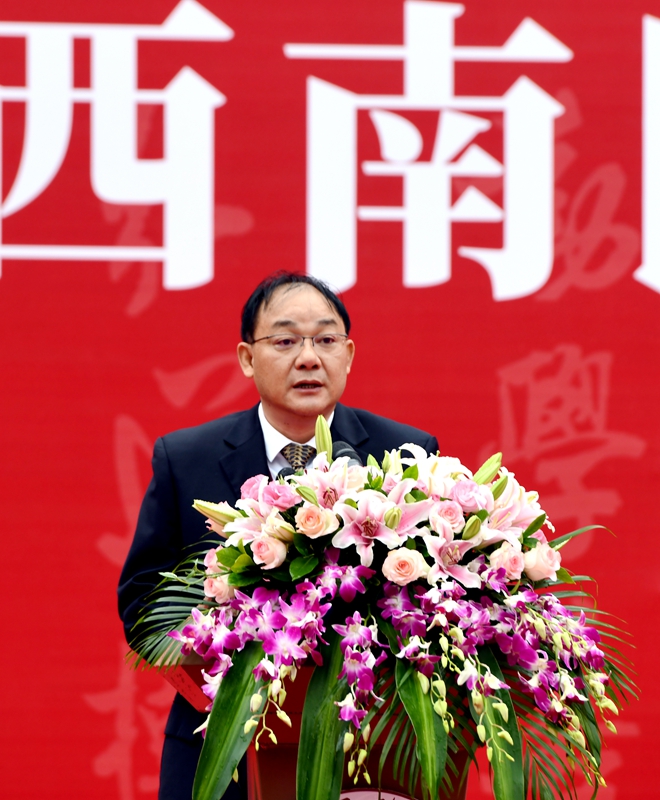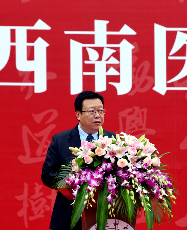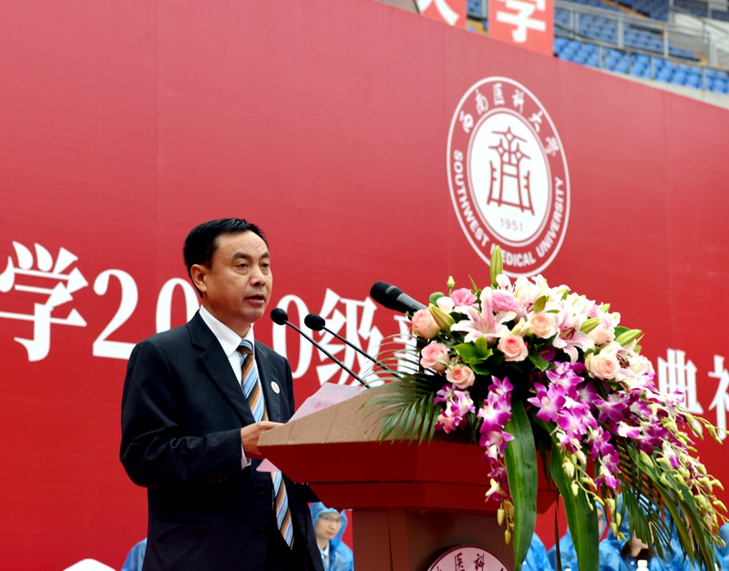 主持行政全面工作副校长张春祥以《笃行前路 执着筑梦 以青春磅礴力量书写人生华章》为题做开学典礼致辞。他谈到,beat365英国官方网站是一所具有厚重历史底蕴、浓郁家国情怀、强烈责任担当和未来可期的医科大学。69年来,学校始终不忘为党育人初心,牢记救死扶伤使命,在医学人才培养、医疗科技创新、疾病预防与诊治、突发公共卫生事件和自然灾害应急救援等方面发挥了积极作用。特别是面对今年突如其来的新冠肺炎疫情,西南医大人义无反顾地奔赴抗击疫情和救治患者第一线,同时间赛跑、与病魔较量,成为这场抗击疫情硬仗中最美的“逆行者”和战斗者,护佑着人民健康。