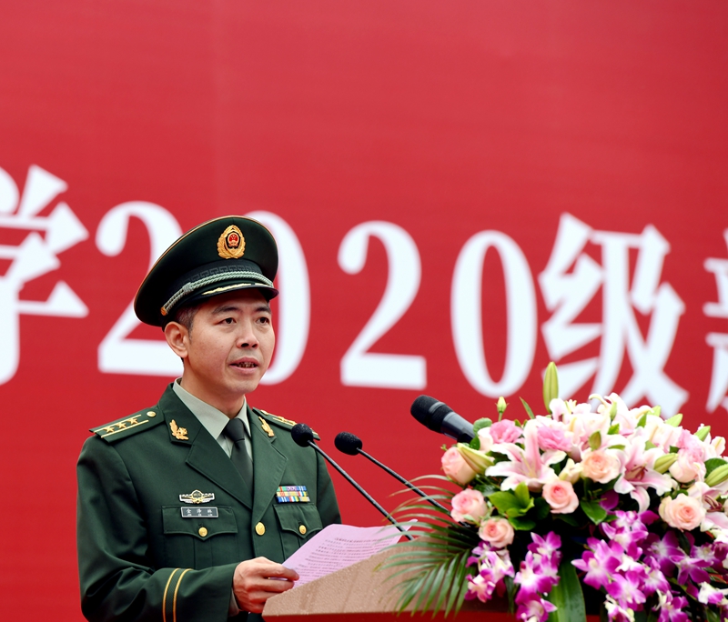 他对2020级新生提出三点希望。一是希望同学们坚定理想信念、忠诚爱国。自觉培养爱国之情、砥砺强国之志、实践报国之行,把“国无防不立,民无兵不安”的国防意识和爱国热情转化为不竭动力,拼搏奋进。二是希望同学们强健体魄、磨炼意志。拿出勇于战胜一切困难和挑战的气魄,以饱满的热情和高昂的斗志出色地完成训练任务。三是希望同学们严于律己,增强团队精神。努力学习人民军队铁的纪律和令行禁止的作风,通过日常的训练、统一的行动来培养热爱集体、严于律己的优良作风。