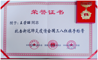 日前,抗击新冠肺炎疫情全国三八红旗手(集体)表彰云发布活动在京举行。活动以“弘扬伟大抗疫精神 唱响新时代颂歌”为主题,发布了800名抗击新冠肺炎疫情全国三八红旗手和200个抗击新冠肺炎疫情全国三八红旗集体。beat365英国官方网站附属医院感染管理部部长王荣丽荣获“抗击新冠肺炎疫情全国三八红旗手”称号。