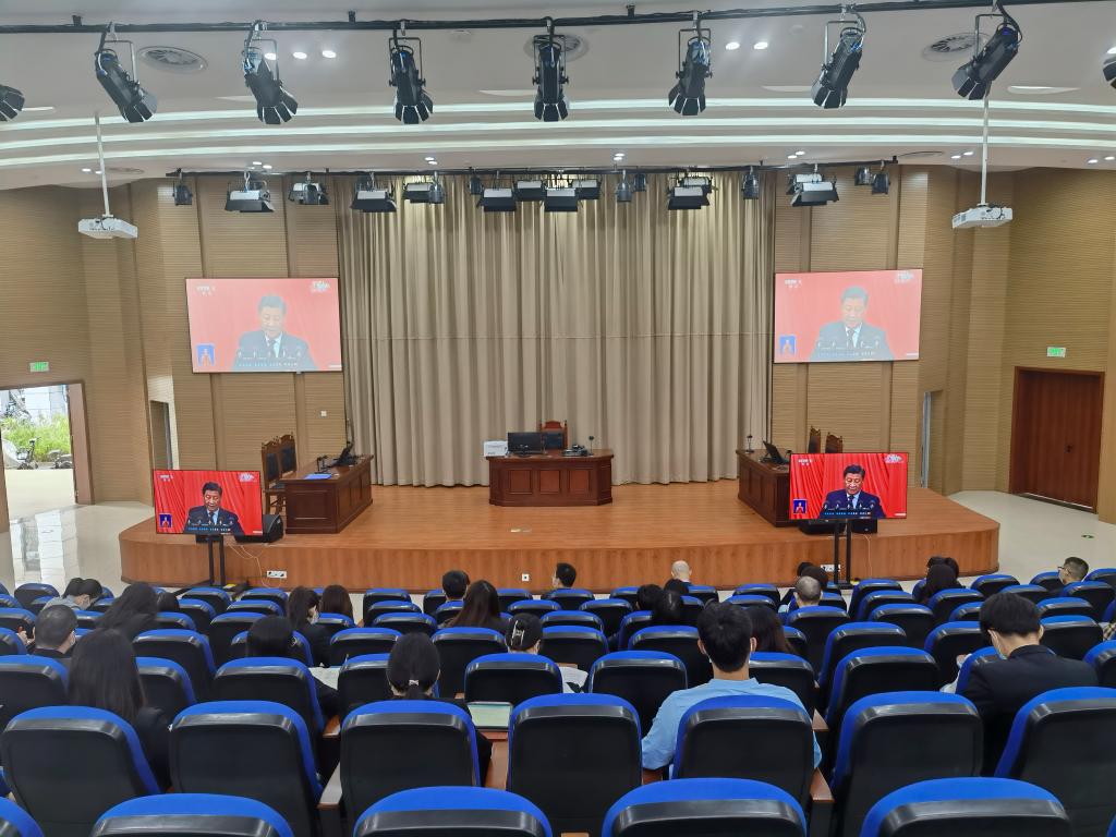10月16日上午10时,中国共产党第二十次全国代表大会在北京人民大会堂隆重开幕。法学院组织处科级干部、教研室主任、中心主任、支部书记及全体党员在模拟法庭集中观看了开幕会现场直播,庆祝党的二十大胜利召开。