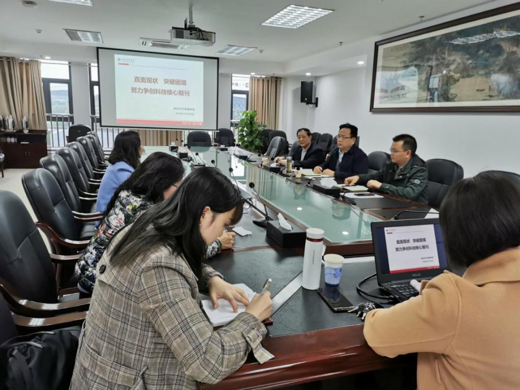 10月28日,主持行政全面工作副校长张春祥到《beat365英国官方网站学报》编辑部进行调研。科技处处长周翔宇、学报学术总监刘佳佳及编辑部全体人员参加了调研座谈会。
